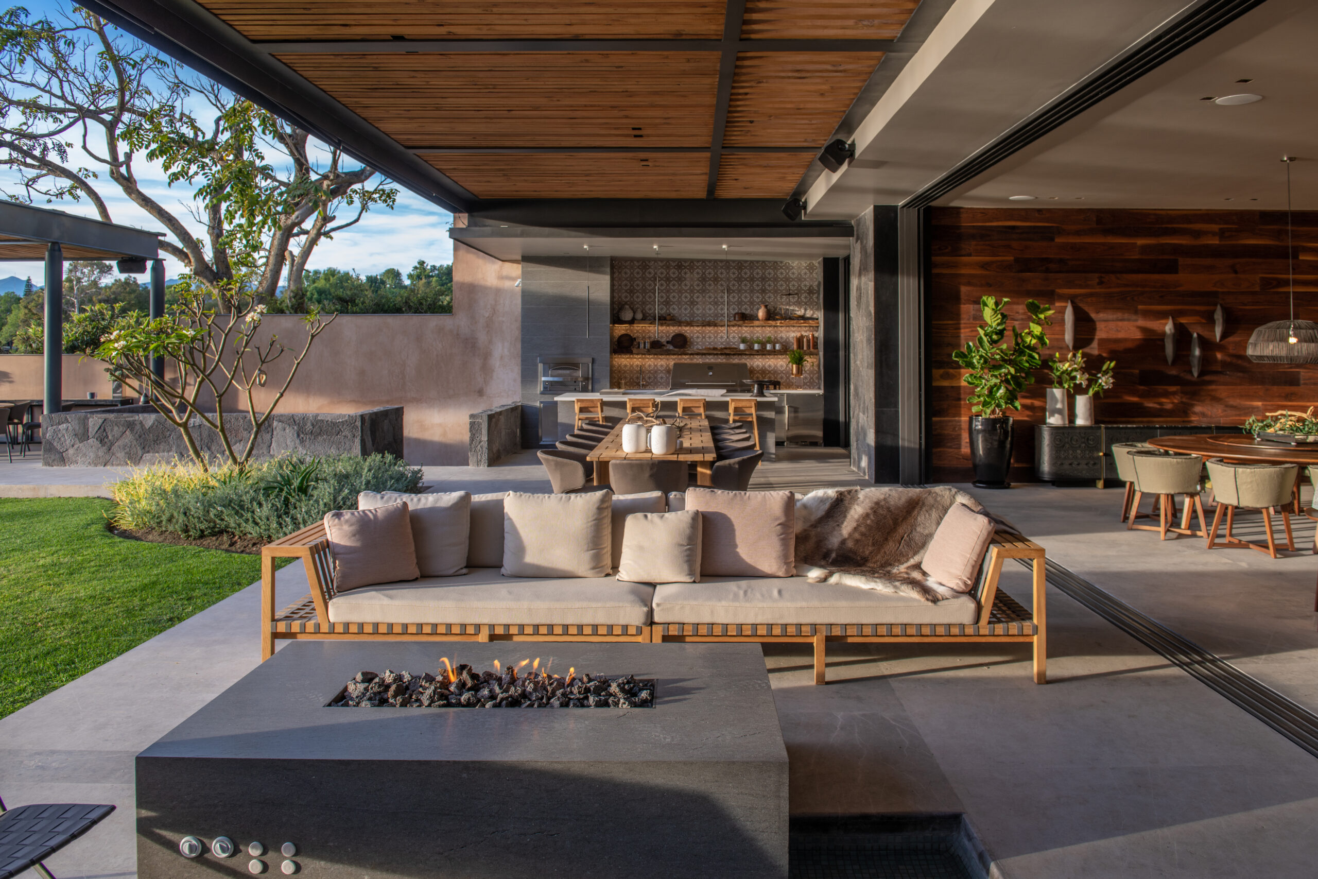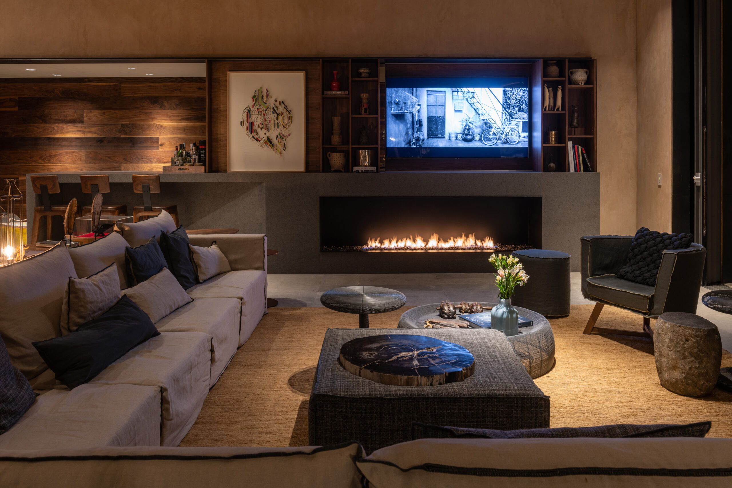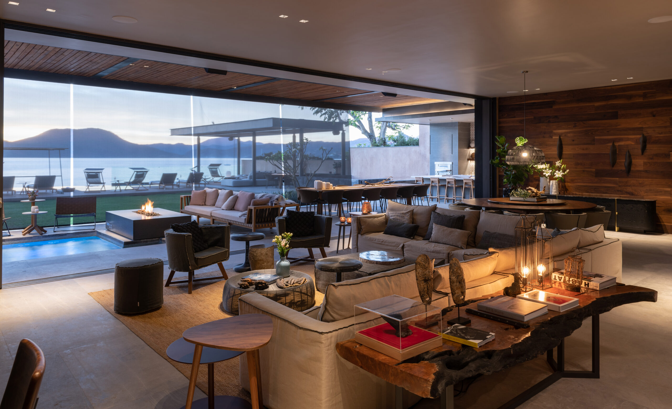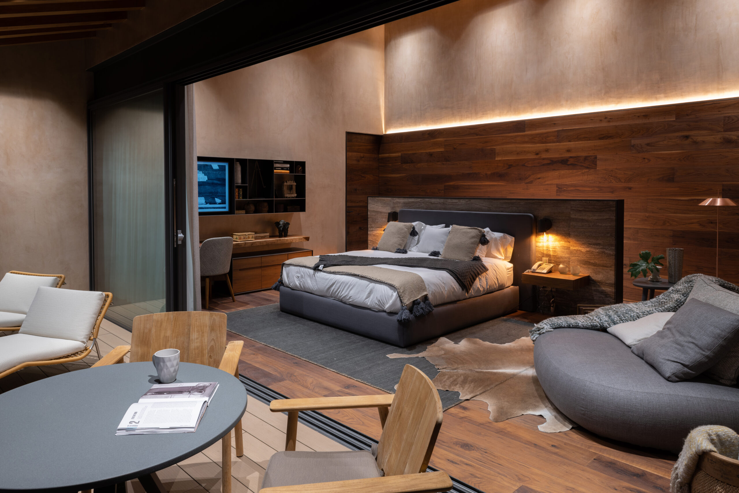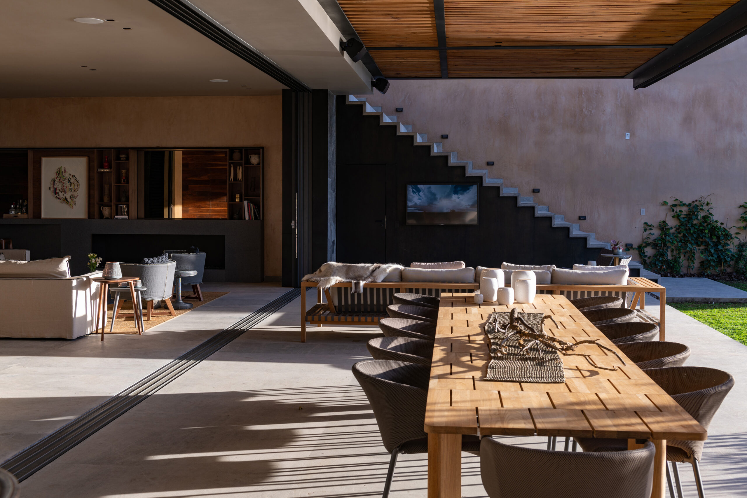 The main indoor living area seamlessly connects with the terrace, effectively doubling the usable space while preserving a sense of cohesion between indoors and out. In this context of spatial flexibility, the role of furniture becomes essential.